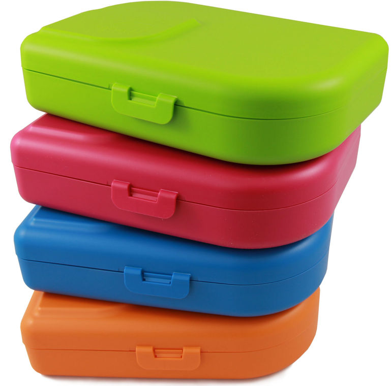 Wir lieben diese Brotdosen: Haben inzwischen schon zwei Farben. Da wir sie schon 2 Jahre im Gebrauch haben sehen sie schon etwas verkratzt aus. Würde sie aber jederzeit wieder kaufen.