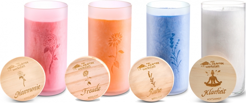 • Heil-Kräuterkerzen ohne synthetische Zusatzstoffe zur Duftintensivierung
