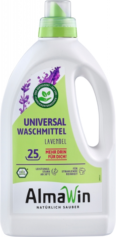 Frei von Enzymen, Phosphat sowie synthetischen Duft-, Farb- und Konservierungsstoffen ist es genau das Richtige für eine zarte und empfindliche Haut (auch von Babys und Kindern). Bio Lavendelöl sorgt für einen feinen Duft. Almawin Waschmittel, das Ihnen bei fast allen Herausforderungen zur Seite steht.