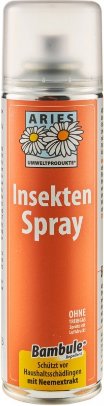 Das ARIES® Insektenspray ist ein Insekten-Repellent (Vertreibungsmittel) und wirkt gegen kriechende und fliegende Schadinsekten im Haushalt. Kriechende und fliegende Insekten werden nachhaltig vertrieben, aber nicht getötet. Das Insektenspray wirkt mit Margosa-Extrakt (Neemöl) und Geraniol. Durch den Margosa-Anteil kann das Spray bei Insekten zu einem Fraßstop führen, wodurch die Vermehrung verhindert wird.