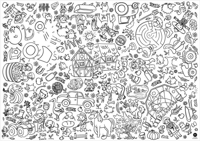 Auf dieser großflächigen Ausmaldecke warten liebevoll gestaltete Bauernhofmotive darauf, mit bunten Farben zum Leben erweckt zu werden. Von Kühen und Schafen über Traktoren bis hin zu ländlichen Landschaften bietet sie eine abwechslungsreiche Szenerie für fantasievolle Kunstwerke. Kinder können nach Lust und Laune gestalten, Farben mischen und eigene Geschichten zu den Illustrationen erfinden. Die großzügige Fläche lädt mehrere kleine Künstler gleichzeitig dazu ein, gemeinsam zu malen und kreative Ideen auszutauschen. So entsteht ein interaktives und spielerisches Erlebnis, das sich perfekt für gesellige Nachmittage oder besondere Anlässe eignet.