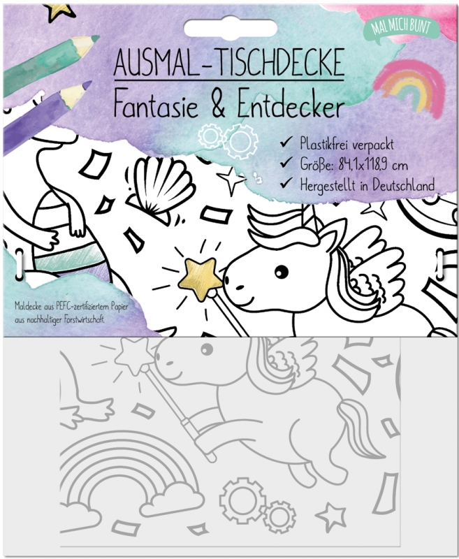 • Lieferumfang: 1 Ausmaltischdecke Fantasie & Entdecker