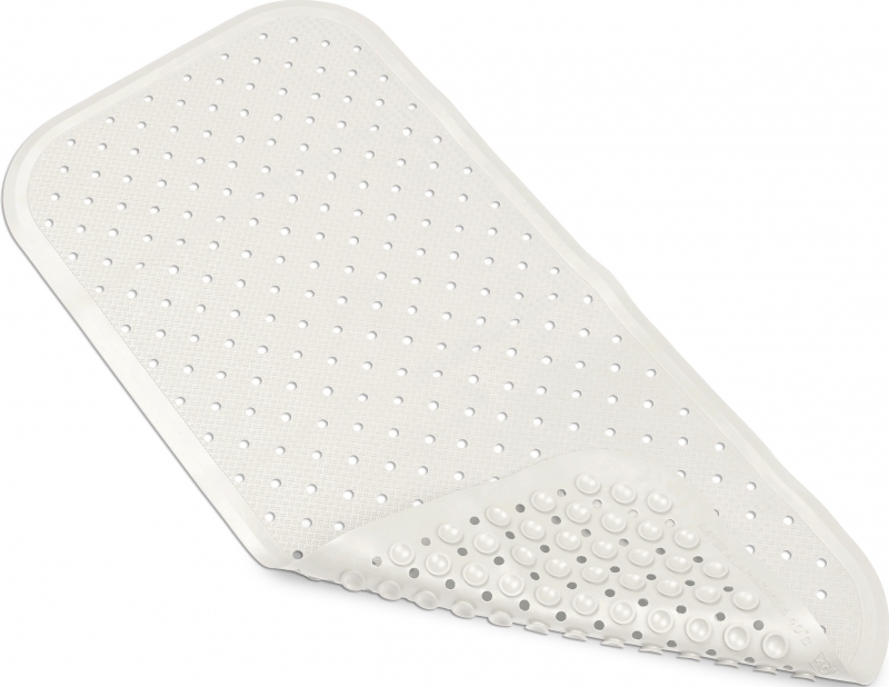 Ausgestattet mit zahlreichen Saugnäpfen auf der Unterseite haftet die Naturkautschuk Badewannenmatte stabil am Untergrund. Die Oberseite ist strukturiert und sorgt so für ein angenehmes Stehen beim Duschen oder Baden. Die Matte lässt sich nach der Nutzung einfach abnehmen, kurz abspülen und trocknen.