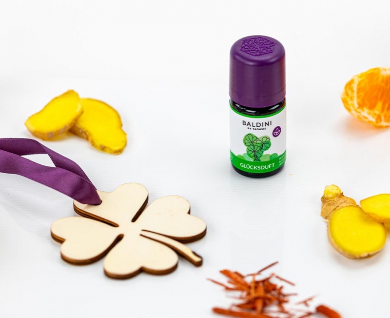 Die erfrischend-harmonisierende Duftmischung Glücksduft beinhaltet 100% naturreine ätherische Öle und kombiniert die spritzige Frische von Clementine, die sanfte Wärme von Sandelholz und den würzigen Kick von Ingwer. Ein Hauch Glück – belebend, harmonisierend und voller positiver Energie.