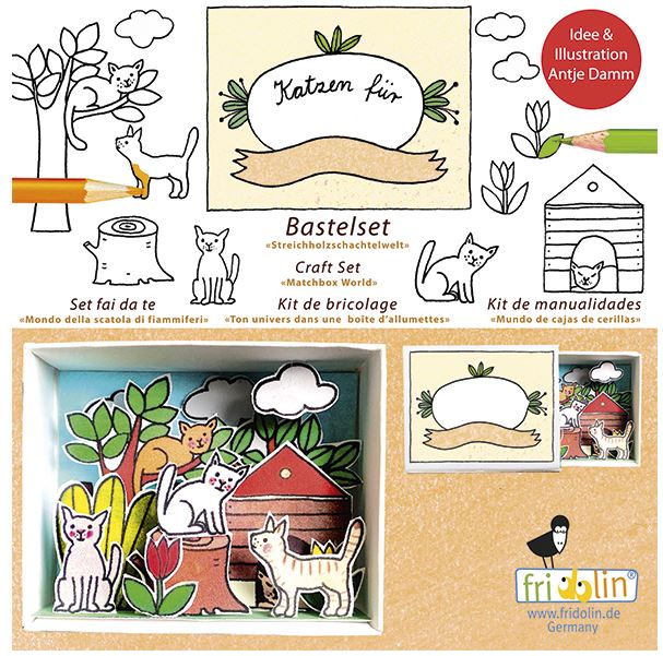 Basteln mit dem Fridolin Bastelset Katzen bringt nicht nur Spaß, sondern kreiert bezaubernde kleine Kunstwerke. Durch Vorlage und vorgestanzten Figuren ist das Gestalten der Zündholzschachtel für kleine Katzenfans ganz einfach.