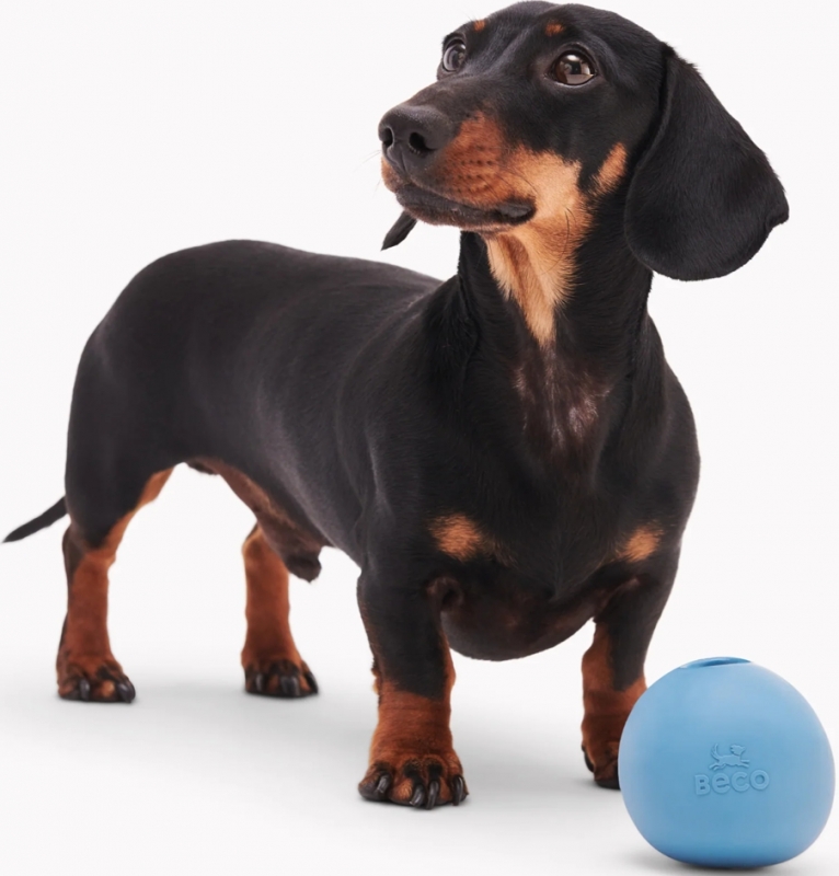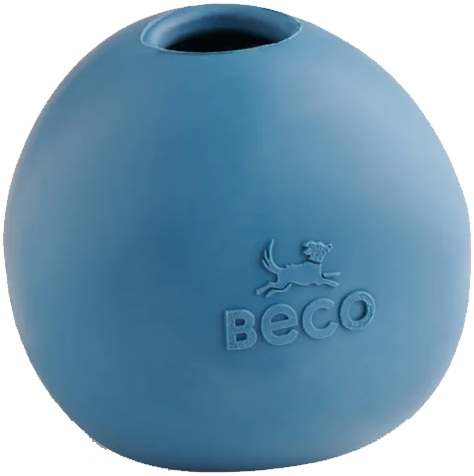 Beco Futterball aus Gummi, welcher aus natürlichen Reisspelzenkautschuk hergestellt wird. Reisspelzen sind ein Nebenprodukt des Reisanbaus. Die weiche Form bringt den Hundeball zum Hüpfen und Rollen. Der extrem elastische Kautschuk macht den blauen Ball zu einem idealen Hundespielzeug zum Apportieren.