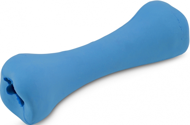 Der Hundeknochen springt und hüpft lustig herum. Der beanspruchbare Kautschuk macht den blauen Hundeknochen zu einem wunderbaren Hundespielzeug zum Apportieren.