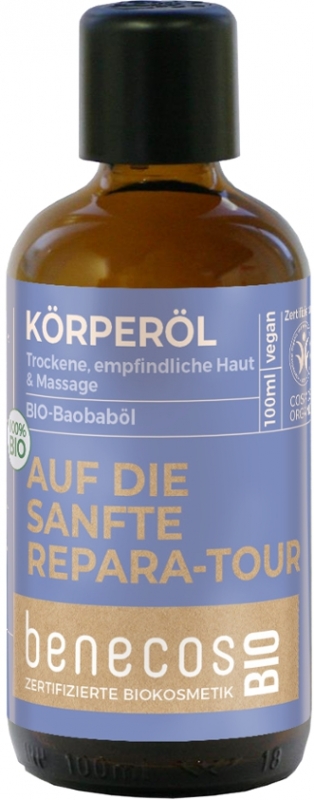 Das wertvolle, kaltgepresste Benecos Bio Baobaböl eignet sich gut für trockene, empfindliche Haut. Es unterstützt auch den Prozess bei Schuppenflechte, Akne sowie nach dem Sonnenbaden. Gleichzeitig wirkt es als Schutz vor lichtbedingter Hautalterung und pflegt rissige Nägel sowie glanzloses Haar. Als Massageöl genutzt, hinterlässt es ein geschmeidiges Gefühl.