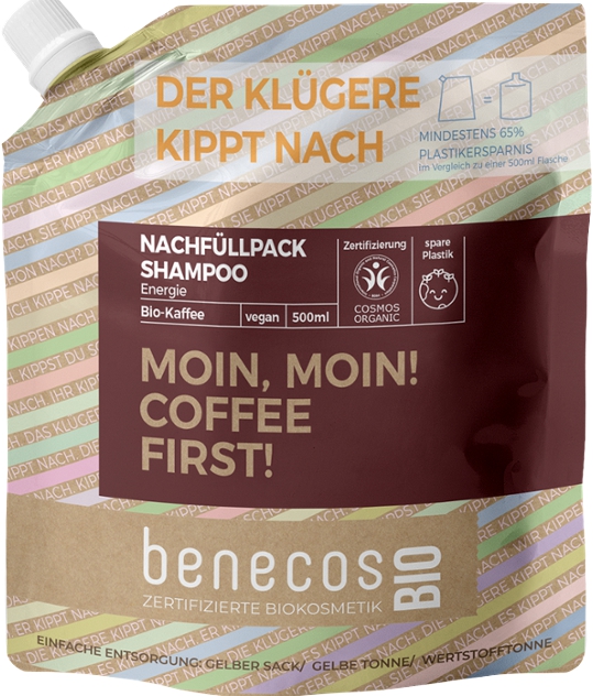 Starte in den Tag. In dem Fall mit der vollen Dröhnung Kaffee, die sich im Benecos Shampoo mit Kaffeebohnenöl, Bio Apfelsaft und pflegendem Bio Brokkolisamenöl versteckt und für ein belebendes Haargefühl sorgt. Gleichzeitig reinigt es das Haar sanft mit pflanzlichen Tensiden.
