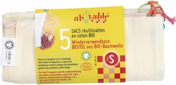 5 Bio Baumwollbeutel mit Zugband in Größe S