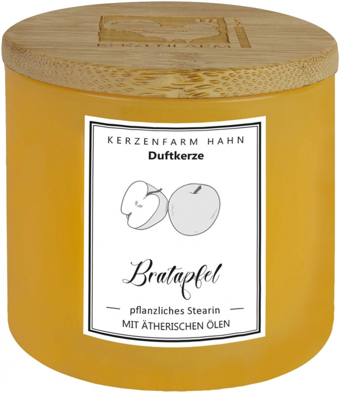Die Duftkerze im gelben Glas mit Bratapfel-Duft bringt ein Stück winterlichen Charme nach Zuhause. Der warme und einladende Duft von Bratapfel verleiht jedem Raum eine festliche Note und erinnert an gemütliche Winterabende.