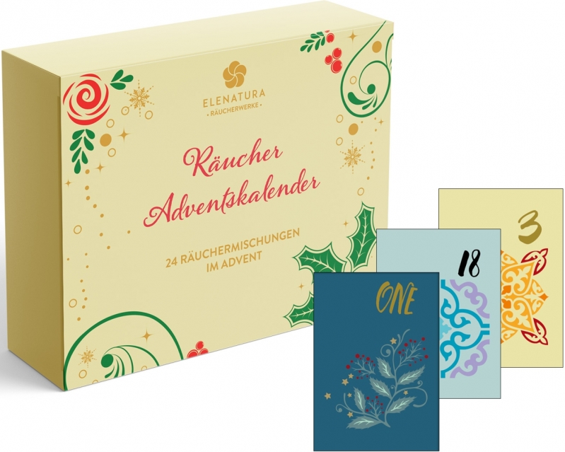 Der Räucher-Adventskalender begleitet durch den Advent mit wohltuenden Düften und entspannenden Räucherritualen. Ideal zum Verschenken oder für die eigene Auszeit. Ein sinnlicher Begleiter, der die Vorweihnachtszeit in eine Ruheoase verwandelt.