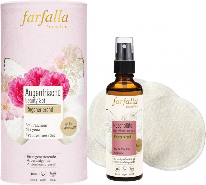 Gönnen Sie den müden Augenpartie eine wohltuende Auszeit mit diesem Beauty Set und dem Farfalla Bio Rosenblütenwasser! Ob nach einem langen Arbeitstag, in trockener Luft oder bei Müdigkeitserscheinungen - das Set ist ideal, um gestressten Augen eine Pause zu gönnen.