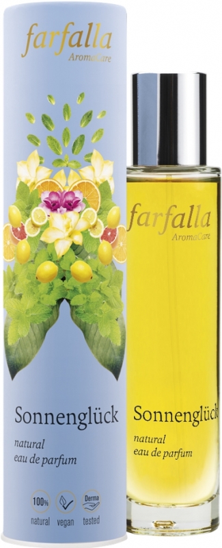 Das Farfalla Eau de Parfum Sonnenglück ist ein Naturparfum, das durch seine besondere Mischung aus sommerlichen Aromen überzeugt. Mit den eingesetzten ätherischen Ölen bietet das Parfum eine erfrischende Duftkomposition, die den Sommer in jeden Tag bringt. Der Duft entfaltet sich auf der Haut in mehreren Facetten, die sich harmonisch zu einem unaufdringlichen, aber dennoch präsenten Erlebnis entwickeln.