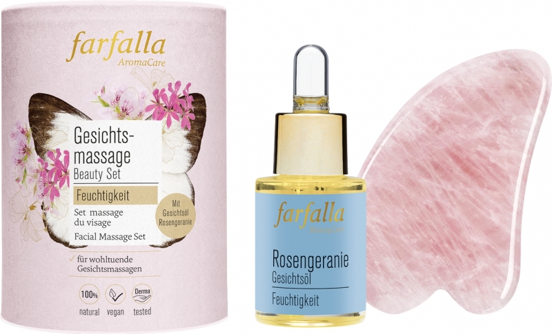 Entdecken Sie das ultimative Verwöhn-Set für Ihr Beauty-Ritual! Das Beauty Set enthält alles, was für eine pflegende Gesichtsbehandlung gebraucht wird. Die Kombination aus einem reichhaltigen Gesichtsöl und der traditionellen Massage mit dem Gua Sha Rosenquarz verleiht einen strahlenden Teint, entspannt die Gesichtsmuskeln und unterstützt die optimale Aufnahme der Pflege.