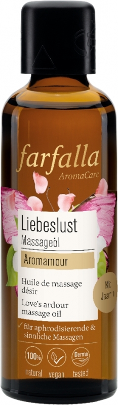 Zärtliche Berührungen, knisternde Leidenschaft. Wenn die ätherischen Öle von Jasmin, Tuberose, Vanille u.a. Haut und Sinne betören, fliegen die Funken in ungeahnte Höhen. Nicht kondomtauglich.