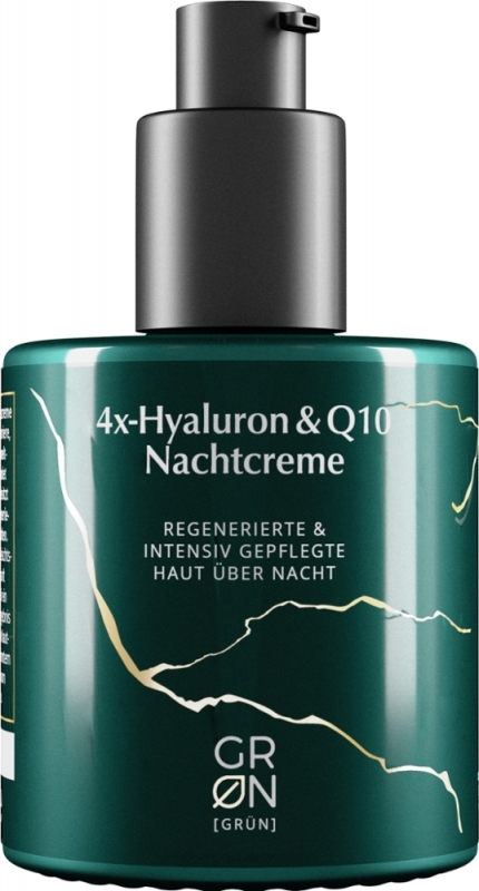 GRN Hyaluronsäure & Q10 Nachtcreme mit Ceramiden sorgt für regenerierte, hydratisierte Haut. Vier verschiedene Hyaluronsäuren dringen in die unterschiedlichen Schichten ein, stärken die Hautbarriere und spenden, zusammen mit dem enthaltenen Bio Mohnöl, intensive Feuchtigkeit. Dank seiner Eigenschaften kann Q10 vor äußeren Umwelteinflüssen schützen und kann die Hautalterung verlangsamen. Zudem hilft es dabei, die Zellregeneration zu fördern und den Teint vitaler und strahlender erscheinen zu lassen. Bisabolol besitzt eine antimikrobielle und beruhigende Wirkung – für tiefgehend gepflegte Haut über Nacht.