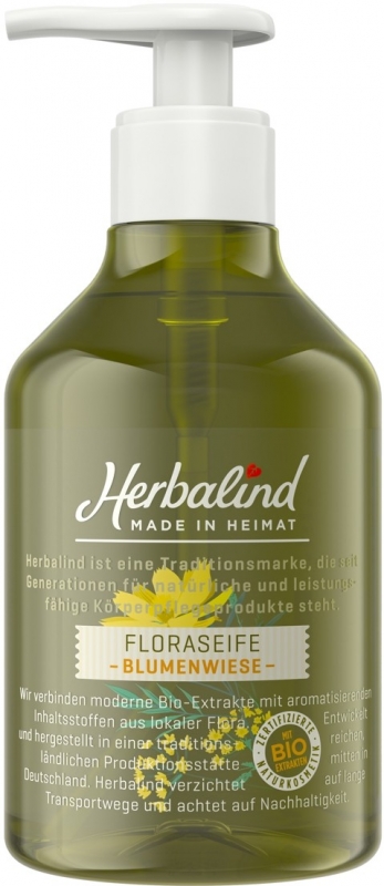 Die Formel der Herbalind Flüssigseife basiert auf natürlichen Inhaltsstoffen, welche die Haut schonend reinigen und pflegen. Sie hinterlässt ein sauberes und erfrischtes Gefühl, während der Duft der Blumenwiese die Sinne verwöhnt. Die flüssige Seife ist angenehm und sanft zur Haut und eignet sich perfekt für den täglichen Gebrauch.