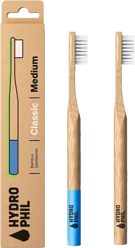 Die Hydrophil Bambus Zahnbürste Classic darf in keinem Badezimmer fehlen. Der klassische Borstenschnitt hält die Zähne strahlend sauber. Es gibt sie in zwei Ausführungen, mit Griff in der Farbe ‚Atlantic Ocean‘ und ganz Natur ohne Farbe.