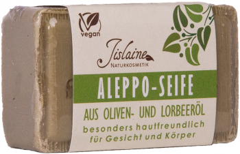 Die Jislaine Alepposeife wird aus pflegendem Olivenöl und Lorbeeröl gefertigt. Sie sind besonders hautfreundlich und ideal für trockene und empfindliche Haut. Da sie auf angenehme Weise rückfetten, ist ein Eincremen nach dem Waschen oder Duschen häufig nicht mehr notwendig.