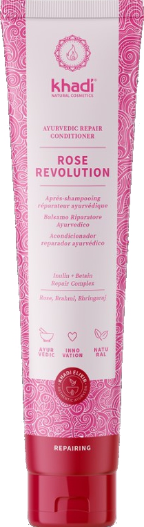 Khadi Rose Repair Conditioner eignet sich für die tägliche Haarpflege ebenso wie für die Anwendung als Haarkur. Die enthaltenen Pflanzenöle bilden eine umhüllende Schicht und erleichtern das Kämmen. Die Haare nehmen gleichzeitig die enthaltenen Nährstoffe auf und werden geschützt.