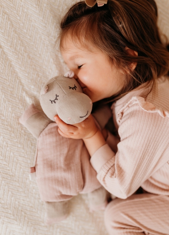 Das Bio Babyspielzeug Hippo sorgt mit seinen verschiedenen Geräuschen und Materialien dafür, dass Babys taktile und akustische Reize erleben können. Es lädt zum Drücken, Greifen, Knistern und Festhalten ein – und schafft damit kleine Erfolgserlebnisse, die spielerisch die motorische Entwicklung anstoßen.