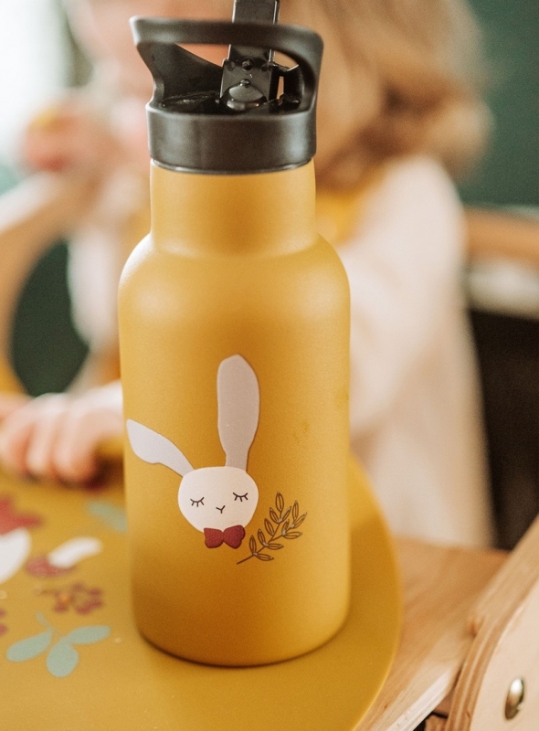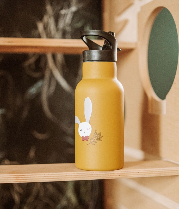 Die Kikadu Trinkflasche Hase bringt eine kindgerechte Leichtigkeit in die Pause. Mit ihrem sanften Hasengesicht auf der Vorderseite spricht sie kleine Kinder sofort an und macht Lust aufs Trinken. Die robuste Flasche besteht aus doppelwandigem Edelstahl und eignet sich ideal für Kindergarten, Schule oder unterwegs. Dank der guten Isolierung bleiben kohlensäurefreie Getränke bis zu 12 Stunden angenehm warm oder kühl, ohne dass die Flasche außen heiß oder kalt wird.