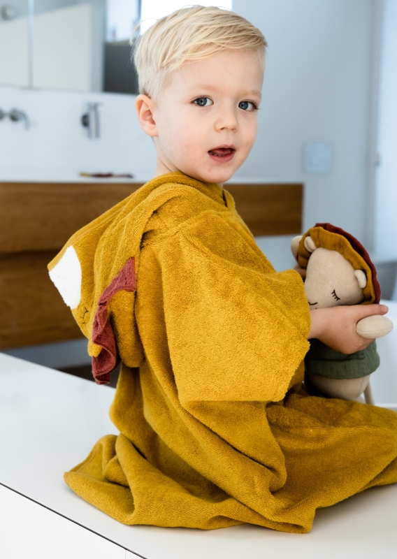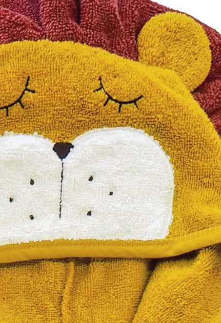 Mit dem niedlichen Kikadu Löwen-Badecape zieht durch die harmonische Farbkombination ein Hauch von Savanne ins Kinderzimmer ein. Der König der Tiere beeindruckt mit seinem Löwengesicht und seiner Mähne aufmerksame Kinderaugen.