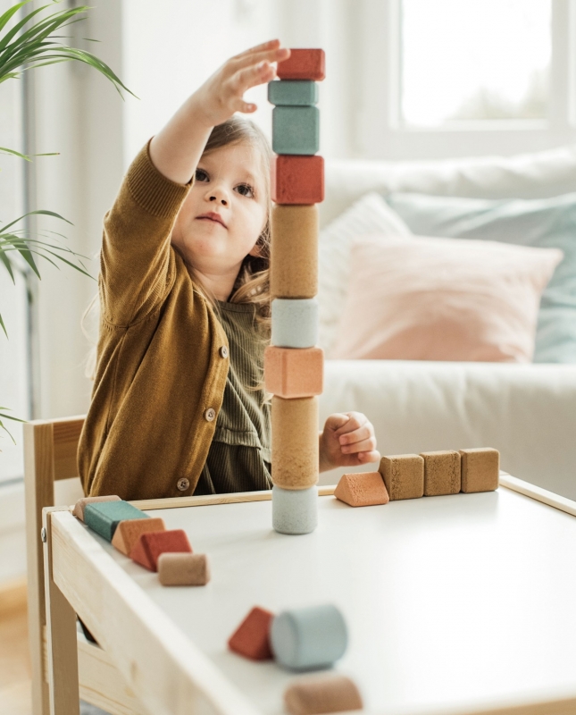Türme, kleine Städte oder lustige Spiele – der Fantasie der Kleinen sind mit den Korko Korkbausteinen keine Grenze gesetzt. Aufgrund der einzigartigen Beschaffenheit lassen sie sich toll stapeln und bauen. Ohne großen Lärm und Verletzungsgefahr darf auch ein höherer Turm ohne Probleme einstürzen. Mit den Korkbauklötzen können sich kleine Architekten so richtig austoben und fantasievolle Gebäude bauen. Auch nach Farben oder Formen können die Bausteine sortiert werden, sowie das Zählen ebenfalls trainiert werden. Das Spiel mit Bausteinen fördert die Feinmotorik und die Farberkennung und vermittelt ein erstes Verständnis von Balance und Statik.