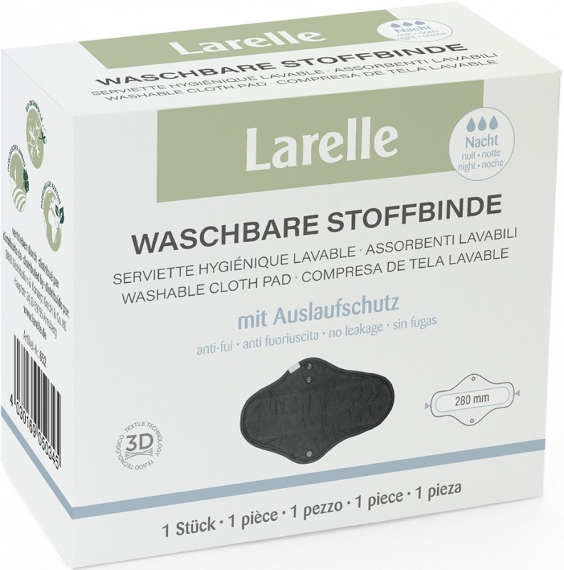Besonders geeignet für leichtere bis mittlere Periodenstärken, sorgen die praktischen Druckknöpfe an den Flügeln für einen perfekten Sitz, ohne lästiges Verrutschen. Die Larelle Stoffbinde ist nicht nur funktional, sondern auch umweltfreundlicher. Durch die Möglichkeit, sie bei 40 Grad zu waschen, tragen Sie aktiv dazu bei, Abfall zu reduzieren.