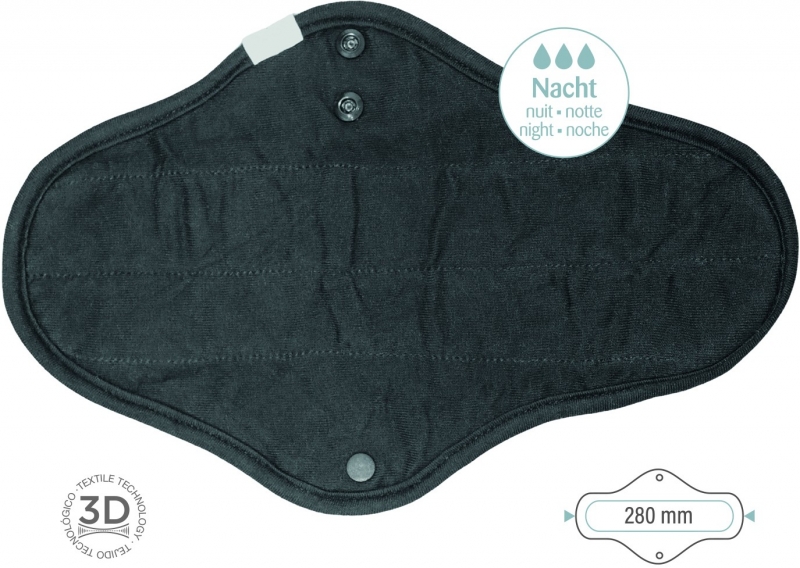 Die absorbierende Mittelschicht besteht aus High-Tech 3D Stoff, hergestellt aus Bio Baumwolle; sorgt für eine hohe Saugfähigkeit.