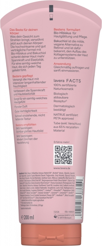 Die hochwirksame und gut verträgliche Formel mit Bio Hibiskus und Bakuchiol schenkt der Haut mehr Spannkraft und Elastizität. Für eine samtig-weiche Haut, die sich jeden Tag geliebt fühlt.