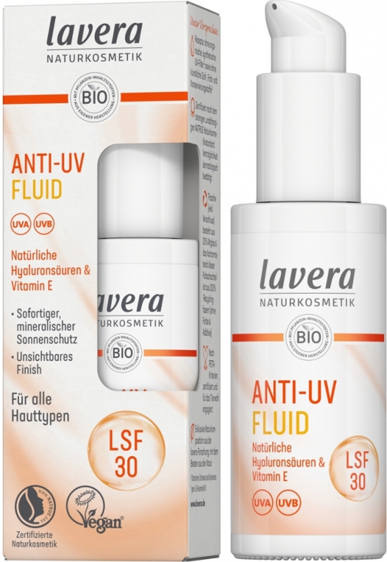 Erleben Sie das Gefühl natürlich schützender Gesichtspflege – jeden Tag: Lavera Anti-UV Fluid LSF30 mit natürlichen Hyaluronsäuren und antioxidativem Vitamin E ergänzt die tägliche Gesichts und schützt die Haut mit sofortiger und zuverlässiger Wirkung vor schädlicher UVA/UVB-Strahlung.