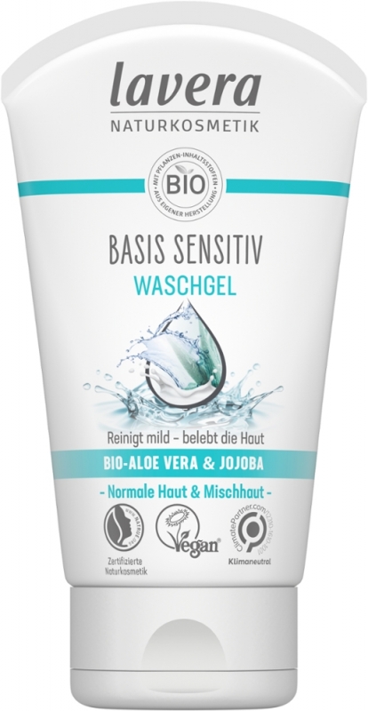 Lavera basis sensitiv Waschgel mit Bio Aloe Vera und Jojoba reinigt normale Haut und Mischhaut mild und gründlich, ohne sie dabei auszutrocknen und verleiht ein spürbar belebtes Hautgefühl.