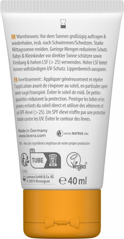 Intensive Mittagssonne meiden. Vor Gebrauch gut schütteln. Vor und während des Sonnens großzügig und mehrfach auftragen, um den Lichtschutz aufrecht zu erhalten, insbesondere beim Schwitzen oder nach dem Schwimmen. Schutz wird durch Anwendung einer geringeren Menge erheblich gesenkt. Babys und Kleinkinder vor direkter Sonne bewahren, schützende Kleidung sowie Sonnenschutz mit hohem Lichtschutzfaktor (LSF größer als 25) verwenden. Auch Sonnenschutzmittel mit hohen LSF bieten keinen vollständigen Schutz vor UV-Strahlen. Übermäßiges Sonnen stellt ein ernsthaftes Gesundheitsrisiko dar! Augenkontakt meiden. Kontakt mit Textilien meiden (Flecken möglich). Sonnenstrahlen werden im Verhältnis UVA:UVB 1:3 gemäß EU Kommissionsempfehlung abgeschirmt.