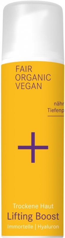 Ein Pflegekomplex aus reichhaltigem Zedernussöl und Immortelleöl lässt sehr trockene Gesichtshaut nachhaltig regenerieren. Immortelle stimuliert dabei die hauteigene Kollagenproduktion und regt die Zellerneuerung an. Zugleich verleiht es dem i+m Lifting Boost seinen warm-würzigen Duft. Hochwertiges Arganöl entfaltet mit Baobabextrakt antioxidative Pflegestoffe.