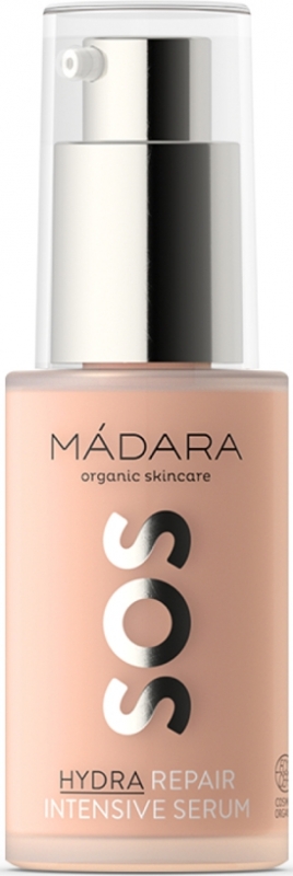Madara SOS Hydra Repair Serum kann den Feuchtigkeitsgehalts in den tieferen Hautschichten wieder herstellen und gleicht gespannte, trockene Haut aus. Die leicht einziehende Formel mit einer feuchtigkeitsspendenden Mischung aus Pfingstrose, Leinsamen und Hyaluronsäure sorgt für ein langanhaltendes angenehmes Hautgefühl. Besonders vorteilhaft bei trockener Haut mit feinen Linien, Fältchen und fehlender Ausstrahlung.