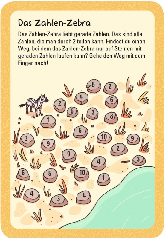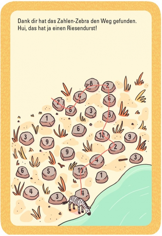 Mit den „Lustigen Zahlenrätseln“ für Grundschulkinder wird Langeweile schnell zum Fremdwort. Auf 50 kunterbunten Karten dreht sich alles um Zahlen, Rechnen und spannende Rätsel, die sowohl kleine als auch große Rechenkünstler*innen herausfordern. Ob das Finden der fehlenden Zahl oder das Lösen kniffliger Aufgaben – jede Karte bietet eine neue, unterhaltsame Herausforderung. Helfe Dromedar Dorothea dabei, ihren Freund Lama Lasse zu besuchen, oder knacke den geheimen Zahlencode, um der Mumie in der Pyramide zu entkommen. Der Mix aus kniffeligen Aufgaben und lustigen Rechenrätseln sorgt für stundenlangen Rätselspaß und fördert gleichzeitig das mathematische Geschick.
