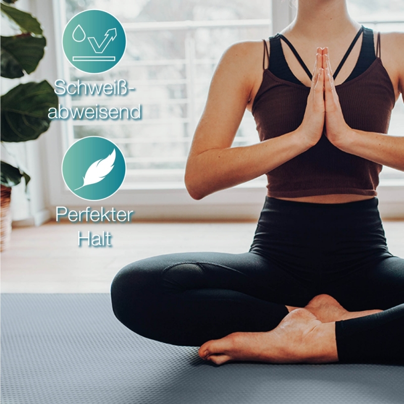 Die Naturkautschuk Yogamatte rutschfest bietet zuverlässigen Halt und angenehme Dämpfung für Yoga, Pilates, Gymnastik, Rückentraining sowie Sport- und Entspannungsübungen. Dank der feinen Noppenstruktur auf der Oberseite ist sie absolut rutschfest und ermöglicht einen guten Stand – selbst bei schweißtreibenden Trainingseinheiten. So bleibt der Fokus ganz auf den Bewegungen, ohne abzurutschen. In die Matte wurde eine Baumwollschicht eingepresst, die für eine besonders hohe Dämpfung sorgt und die Gelenke effektiv schont. Auf der Unterseite sorgt eine sichtbare Netzstruktur für optimalen Halt auf dem Boden – für ein stabiles, gelenkschonendes und konzentriertes Training auf jedem Untergrund.