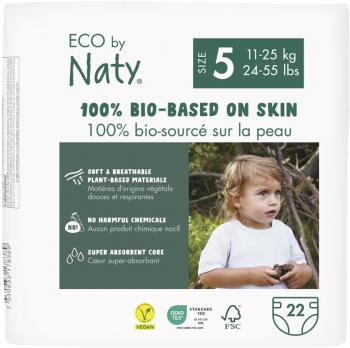 Naty ist überzeugt davon, dass Hautirritationen durch natürliche Materialien, die sanfter zur Haut Ihres Babys sind, verringert werden können. Aus diesem Grund basieren die Wegwerfwindeln von Naty auf natürlichen Materialien, die weniger chemische Stoffe enthalten, damit Ihr Baby glücklich ist.