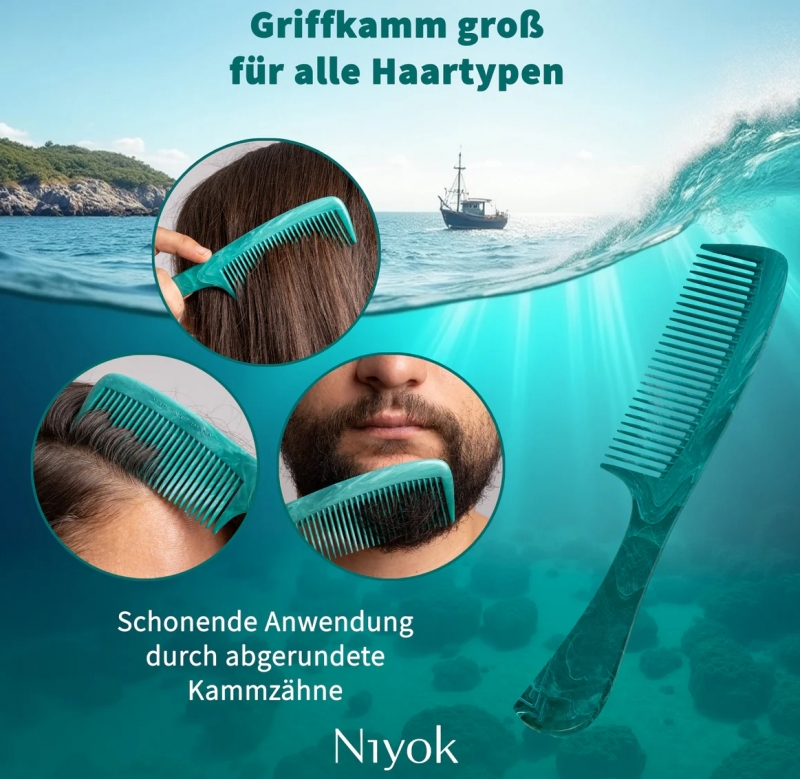 Der Niyok Griffkamm überzeugt durch Material, Form und Funktion. Ein Produkt für alle, die beim Styling auf Qualität setzen – und auf eine Herkunft, die Sinn ergibt.