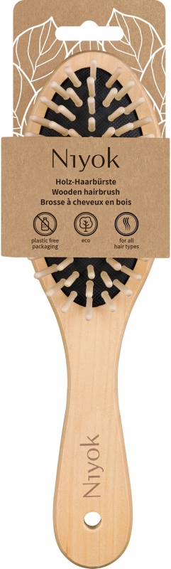 Die Niyok Holzhaarbürste ist mit ihren Holznoppen perfekt für alle Haartypen und die tägliche Anwendung geeignet.
