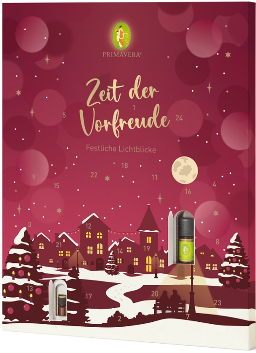 Der Primavera Adventskalender offenbart in 24 Fächern wechselnde Highlights für die Vorweihnachtszeit. Hinter jedem Türchen verbergen sich verschiedene Duftöle oder Pflegeprodukte, die den Dezember duftend gestalten. Die Inhalte im Primavera Adventskalender verleihen jeden Tag einen eigenen Impuls und unterstreichen die Vielfalt der festlichen Saison.
