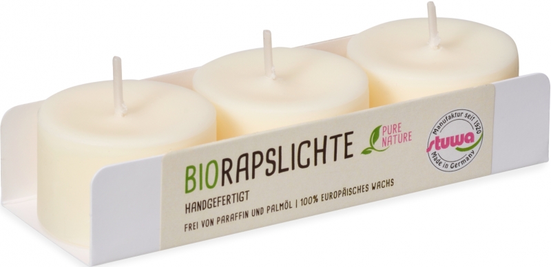 Rapskerzen bieten allerbeste Brenneigenschaften und eine ansprechende Optik. Aus dem schnell nachwachsenden Rapskorn wird das Rapsöl herausgepresst und danach zu Wachs gehärtet.