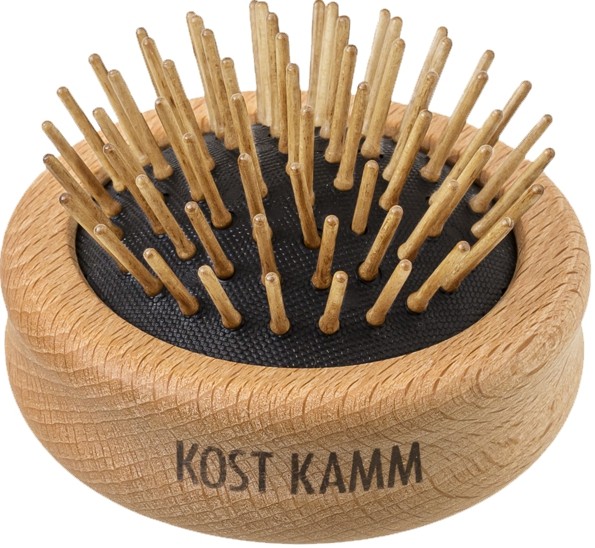 Hergestellt aus hochwertigen Materialien, bietet die kleine Haarbürste eine praktische und langlebige Pflegeerfahrung. Ihr handlicher Mechanismus sorgt dafür, dass man stets einwandfrei aussehen kann, egal ob auf Geschäftsreisen, im Urlaub oder einfach nur unterwegs in der Stadt. Die KostKamm Haarbürste ist ein vertrauenswürdiger Reisebegleiter. Sie verbindet stilvolles Design mit beispielloser Effizienz. Echte Holznoppen bieten jedem Haartyp sanfte Pflege und hält es stets in Topform. Sie passt mühelos in jede Tasche, Rucksack oder Kulturtasche, und das elegante Äußere wird in puncto Stil und Funktionalität begeistern.