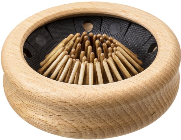 Die Anwendung dieser Reisebürste ist so simpel wie effizient. Mit nur einem leichten Fingerdruck lässt sich das Kissen aus der Bürste herauspoppen, und schon ist sie einsatzbereit das Haar zu bändigen und in Form zu bringen. Die Holznoppen gleiten schonend durch das Haar, entwirren es und verleihen ihm sofort ein gepflegtes Aussehen.