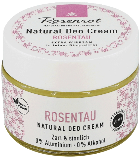 Die Rosenrot Deo Creme mit der innovativen "Fresh and Dry" Formel ist zu 100% natürlich und durch Natron besonders effektiv gegen Schweiß. Überzeugen Sie sich selbst!