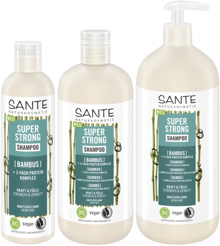 Das Sante Kraft Shampoo setzt auf eine wirksame Pflegekombination mit Bio Bambus Extrakt und einem 3-Fach Protein Komplex. Diese spezielle Formel stärkt das Haar, reduziert Haarbruch und verleiht einen natürlichen Schwung bis in die Spitzen, ohne das Haar zu beschweren. Mit dem Protein Komplex wird das Haar von der Wurzel bis in die Spitzen gestärkt, gepflegt und geschützt. Gleichzeitig sorgt der hydratisierende Pflegekomplex für den Aufbau und die Erhaltung einer natürlichen, kraftvollen Haarstruktur.