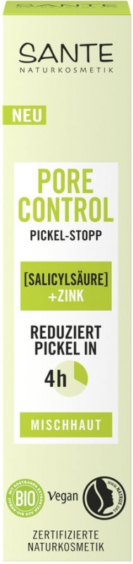 Der Sante Pore Control Pickel Stopp bietet eine gezielte Hilfe bei Pickeln und Unreinheiten, kann Entzündungen lindern und Rötungen und Irritationen reduzieren. Salicylsäure und Zink helfen dabei, Pickel zu beruhigen.