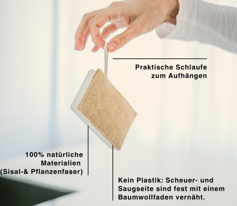 • Material Scheuerseite: 100% Sisalfaser sowie ein Baumwoll-Faden, der beide Seiten zusammenhält